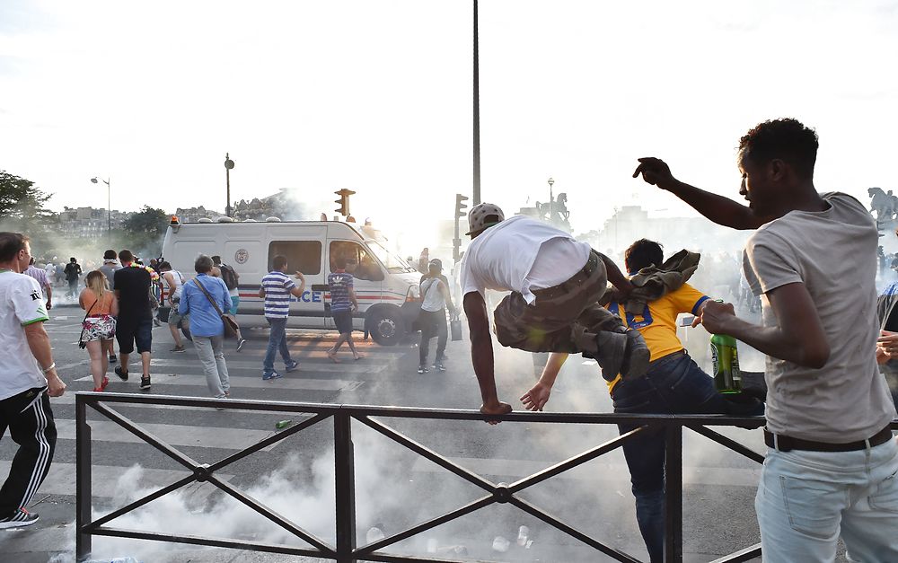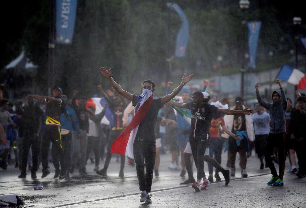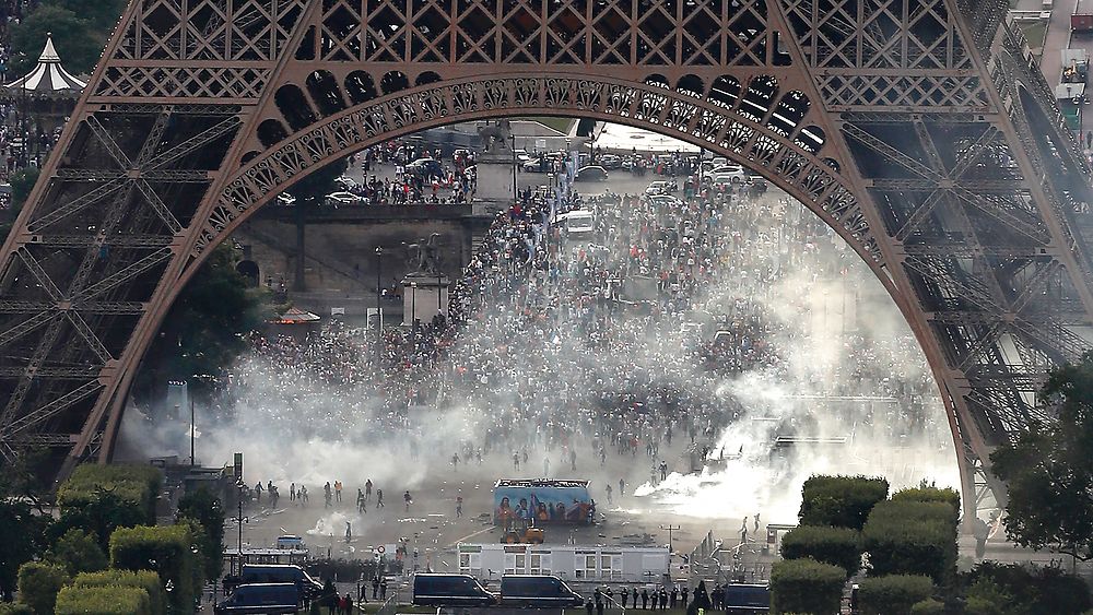 Politiet har været nødsaget til at ty til tåregas i forsøget på at tæmme fans i fanzonen ved foden af Eiffeltårnet, hvor franske og portugisiske fans ser aftenens EM-finale på storskærm.