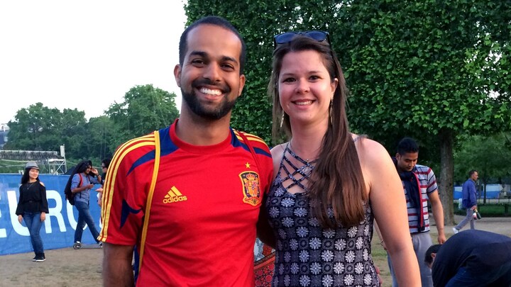 - Vi vil være her i fanzonen til åbningskampen, siger Renato de Barros Santos, der sammen med sin kone er kommet til Paris fra San Paulo i Brasilien, og som DR møder ved fanzonen.