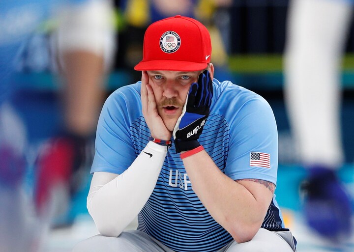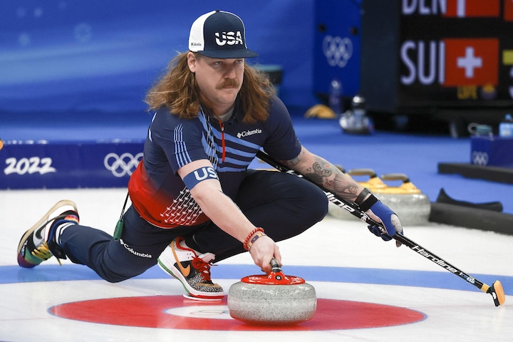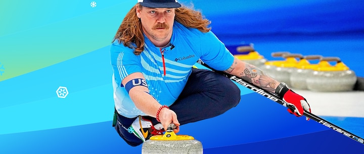 Han er svær at overse, for den amerikanske curler skiller sig ud fra curling-mængden. Det kan man vist godt tillade sig at konkludere.
