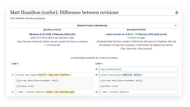 Det samme sker for Wikipedia-sider om amerikansk curling generelt, skriver nyhedsmediet ESPN.