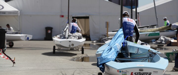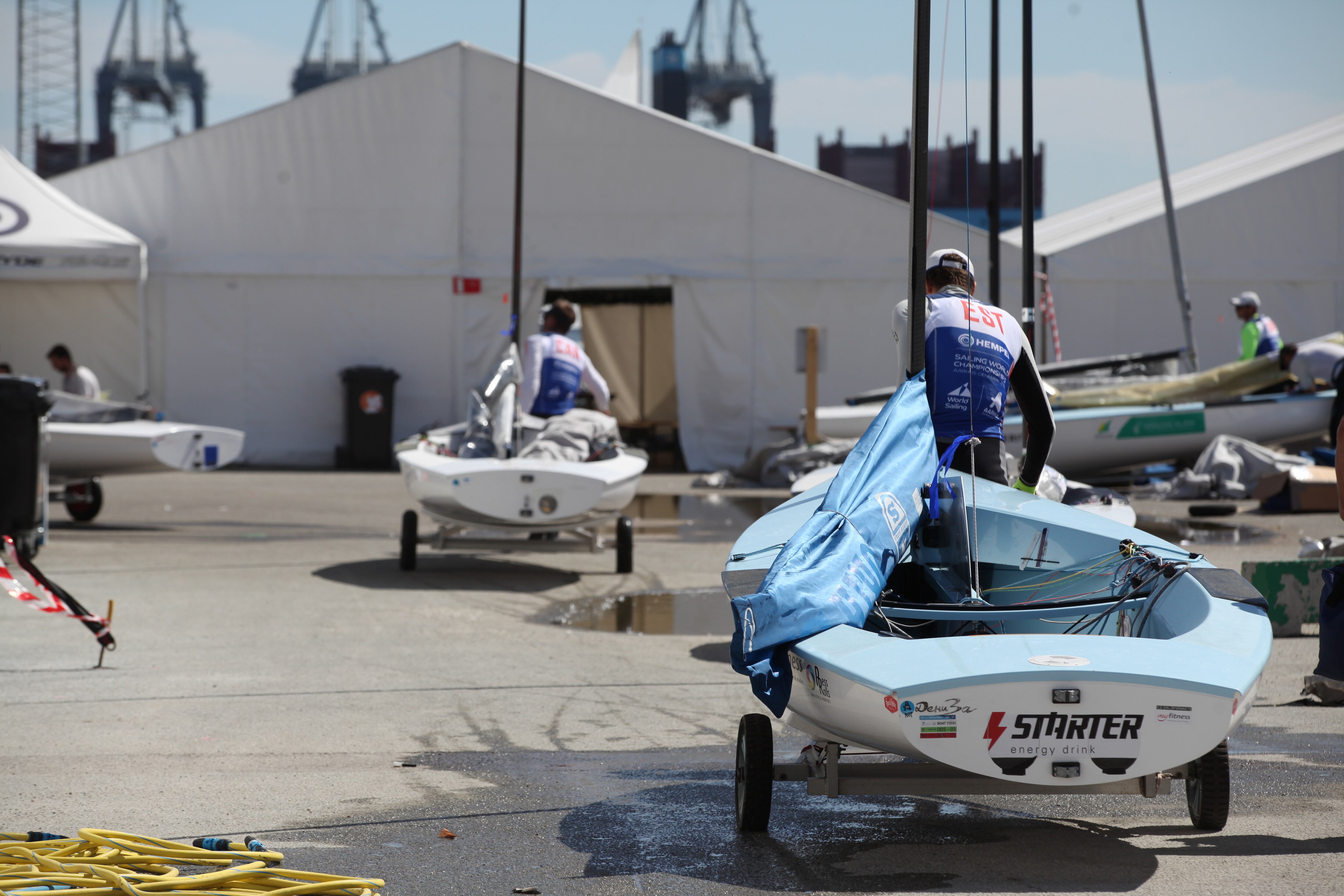 Sejlere fra lande som Italien, Kina og Bulgarien har linet op i små lejre med pavilloner, og der er en spændt summen som en stilhed før stormen, hvor de bare venter på at komme i aktion.