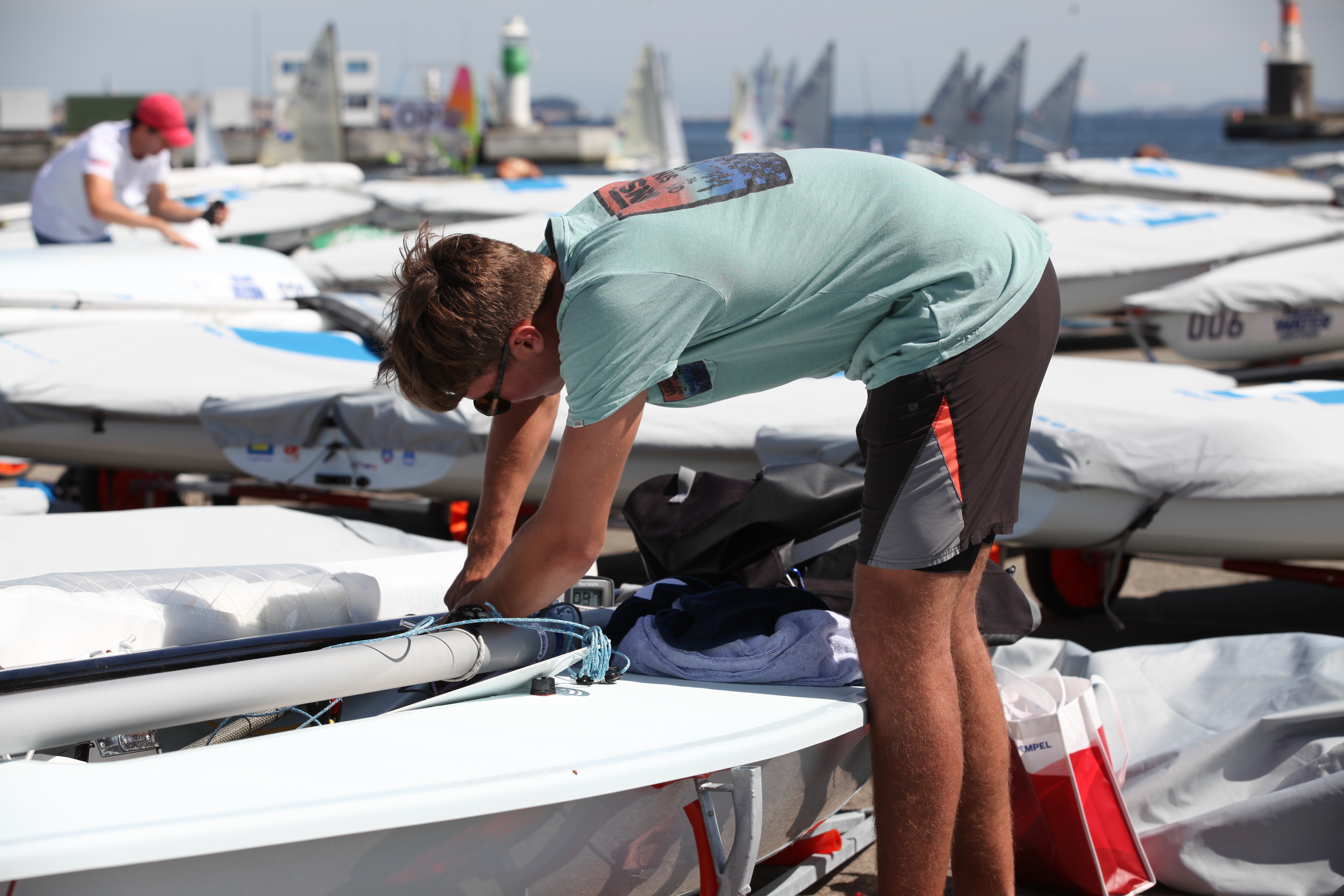 Der er dog en helt anderledes afslappet stemning hos sejlerne i klassen Laser Radial. De har nemlig været ude og træne på vandet og skal først i konkurrence tirsdag.