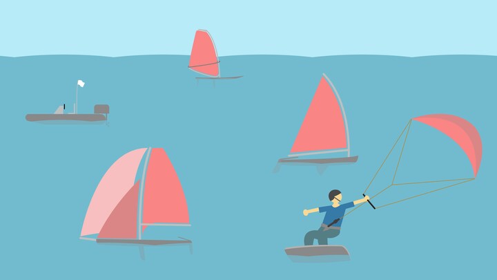 I kitesurfing er deltageren fastspændt på et sejlbræt, og får fremdrift af en styrbar drage kaldet en power kite. Konkurrencesejlads i kitesurfing er forholdsvist nyt og er med for første gang i VM i Aarhus 2018. Men der er lagt op til action, da kitesurfere kan nå en topfart på over 90 kilometer i timen. Fun fact: Kitesurfere kan springe op til 20-30 meter i længden på deres boards.
