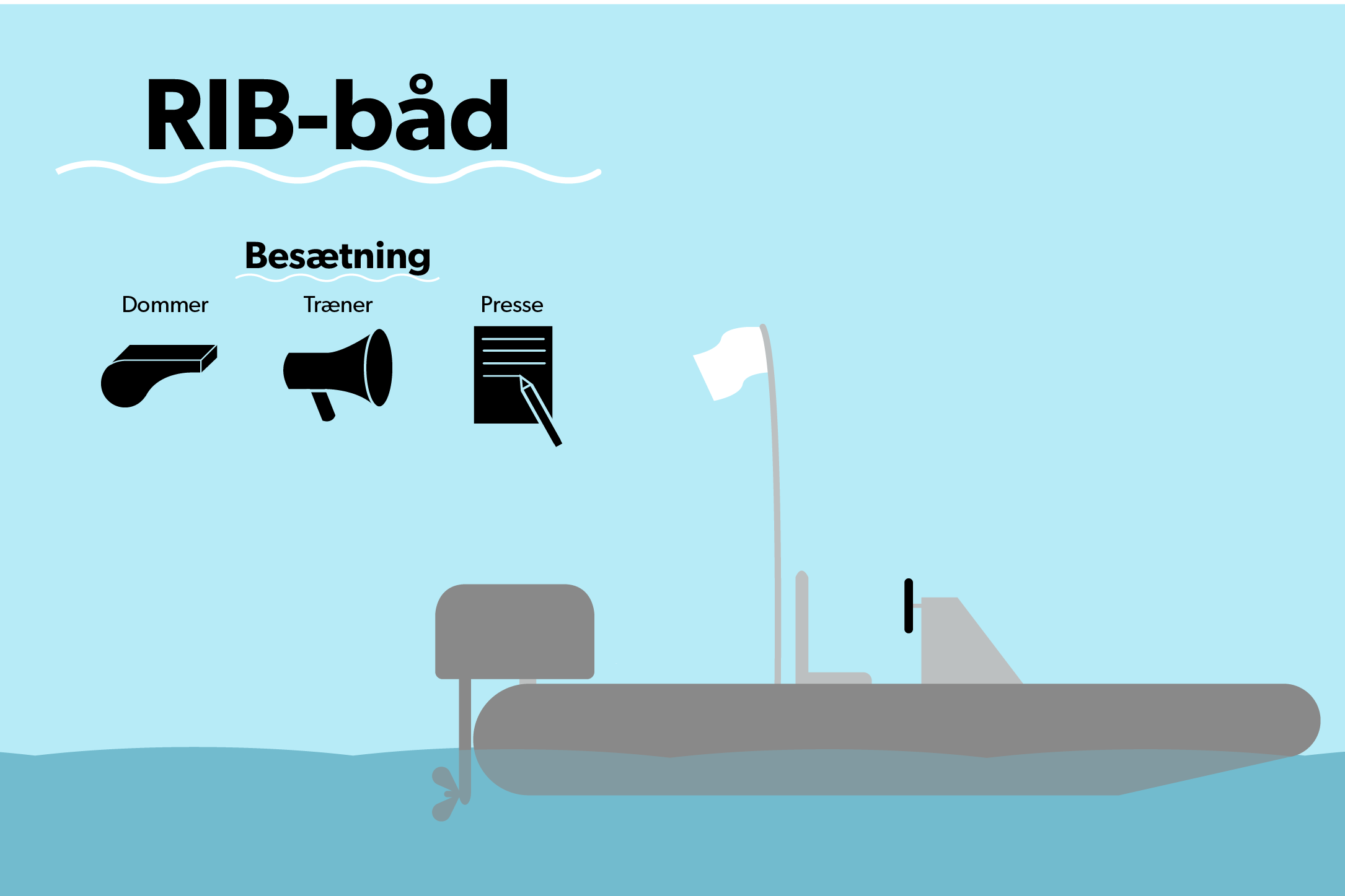 RIB-båd er faktisk ikke en konkurrencebåd til VM i Aarhus, men du vil med garanti se den i vandet under VM. I de mange RIB-både befinder der sig nemlig sejladsdommere, trænere og pressefolk.