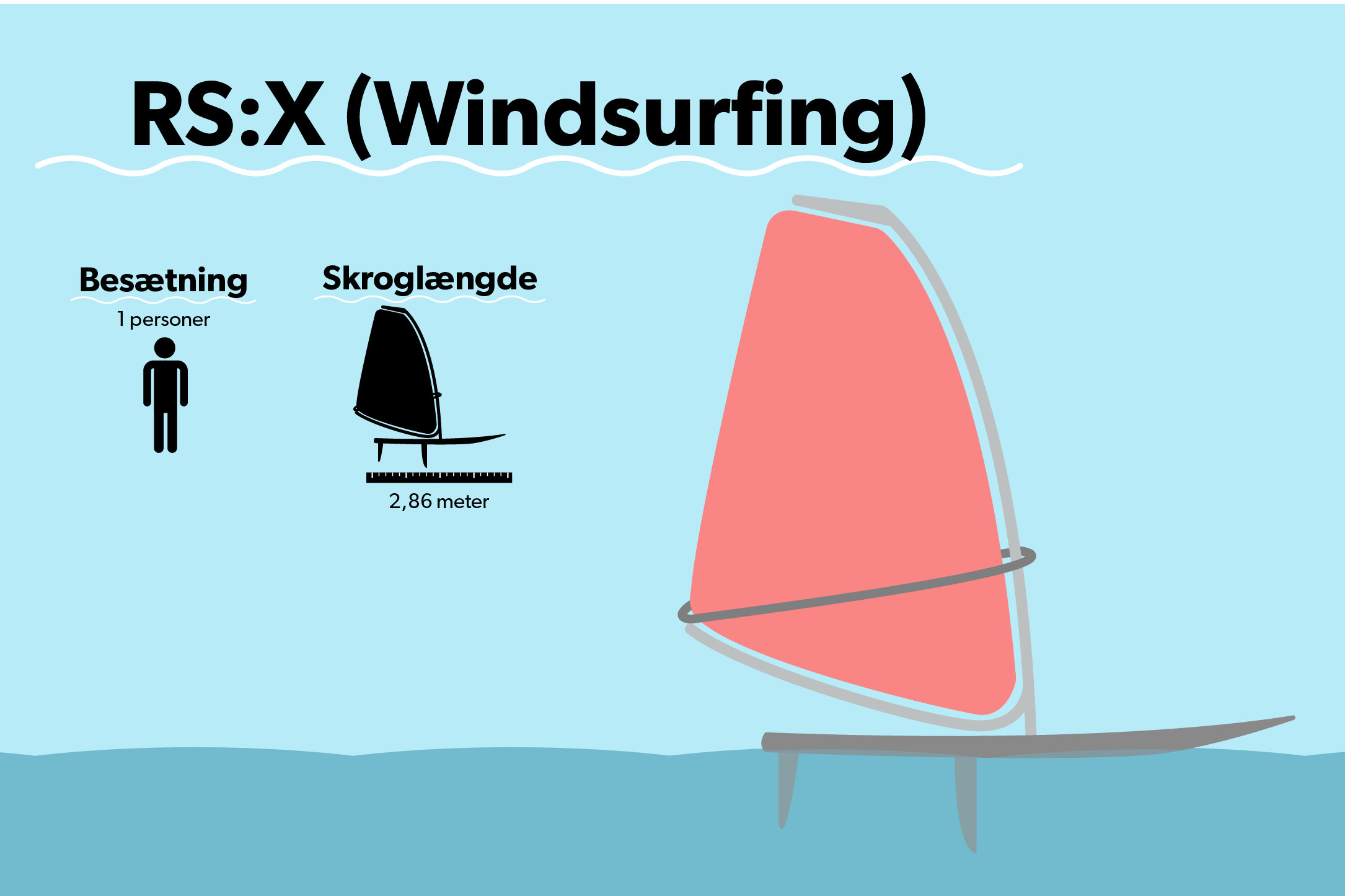 Til VM i sejlsport 2018, skal der også dystes i windsurfing. Sejlerne i denne bådklasse er udstyret med et surfboard, hvorpå der er monteret et sejl. Sejleren opererer boardet i stående stilling, og skal på hurtigst vis gennemføre en given rute. Fun fact: RS:X-brættet er det eneste windsurfer-bræt der må benyttes i konkurrencen, således at alle deltager konkurrer på samme vilkår.